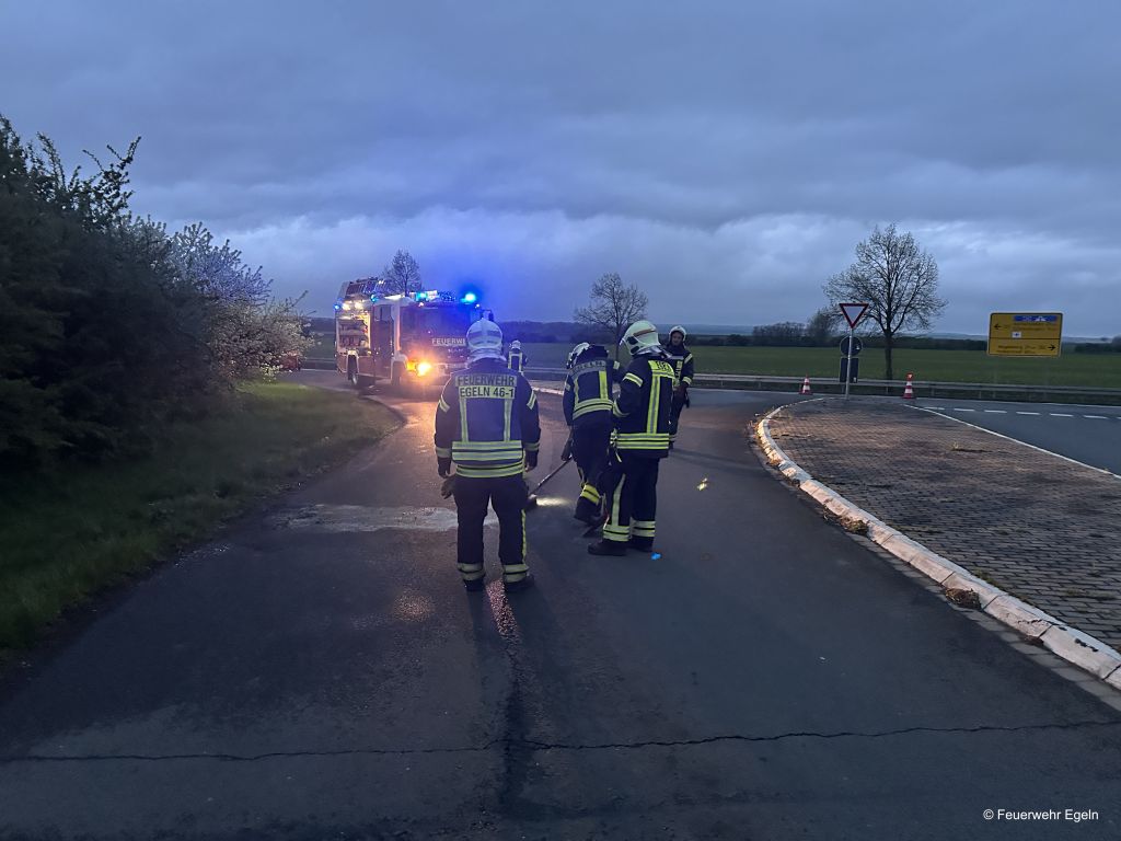 Am 18.04.2025 von 19:42 bis 21:00 Uhr musste eine Ölspur beseitigt werden, die sich durch halb Egeln zog.