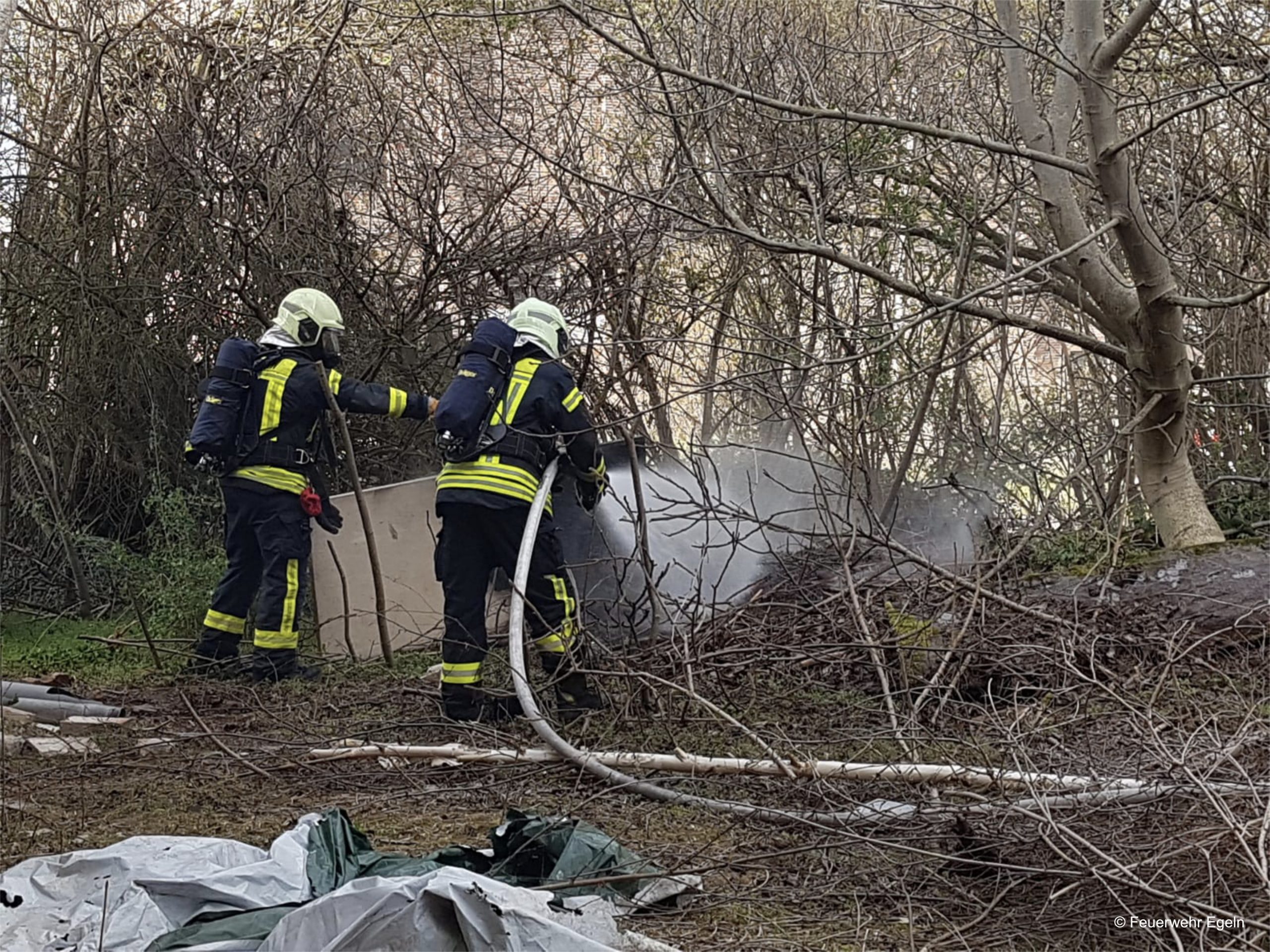 Erneut brannte es am Einsatzort vom Einsatz Nr. 18. Wieder war Unrat in Brand geraten. Ein Trupp unter Pressluftatmer löschte das Feuer mit einem C-Rohr.