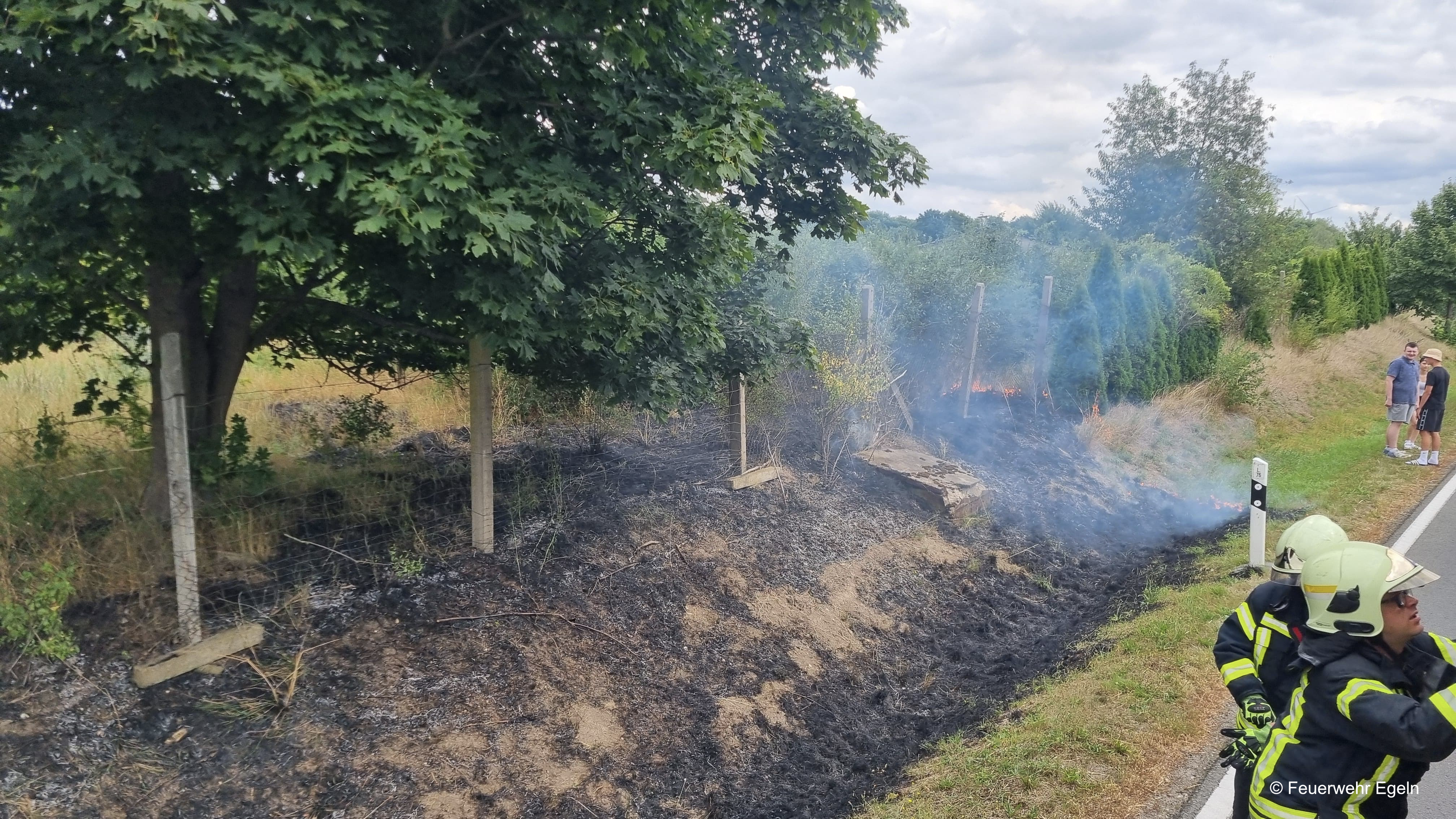Die Feuerwehr Egeln wurde alarmiert, weil eine Straßenböschung brannte. Vor Ort wurde eine brennende Fläche von ca. 100 Quadratmetern festgestellt. Das Feuer wurde mittels zweier C-Rohre gelöscht.