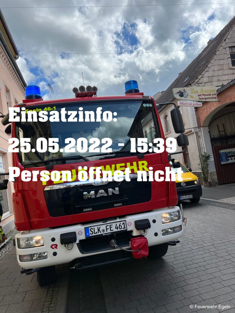 Die Feuerwehr Egeln wurde alarmiert, weil eine Person seit Tagen vermisst worden war und die Vermutung bestand, dass sie hilflos in der Wohnung eingeschlossen ist. Die Einsatzkräfte öffneten die Wohnungstür mit technischem Gerät und fanden einen Hund vor. Die vermisste Person wurde nicht angetroffen.