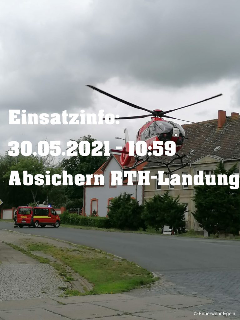 Die Feuerwehr Egeln wurde alarmiert, um die Landung eines Rettungshubschraubers abzusichern. Dieser landete mit einem Notarzt an Bord zu einem Rettungseinsatz an der Ascherslebener Straße. Der bodengebundene Rettungsdienst war mit einem Rettungswagen vor Ort.