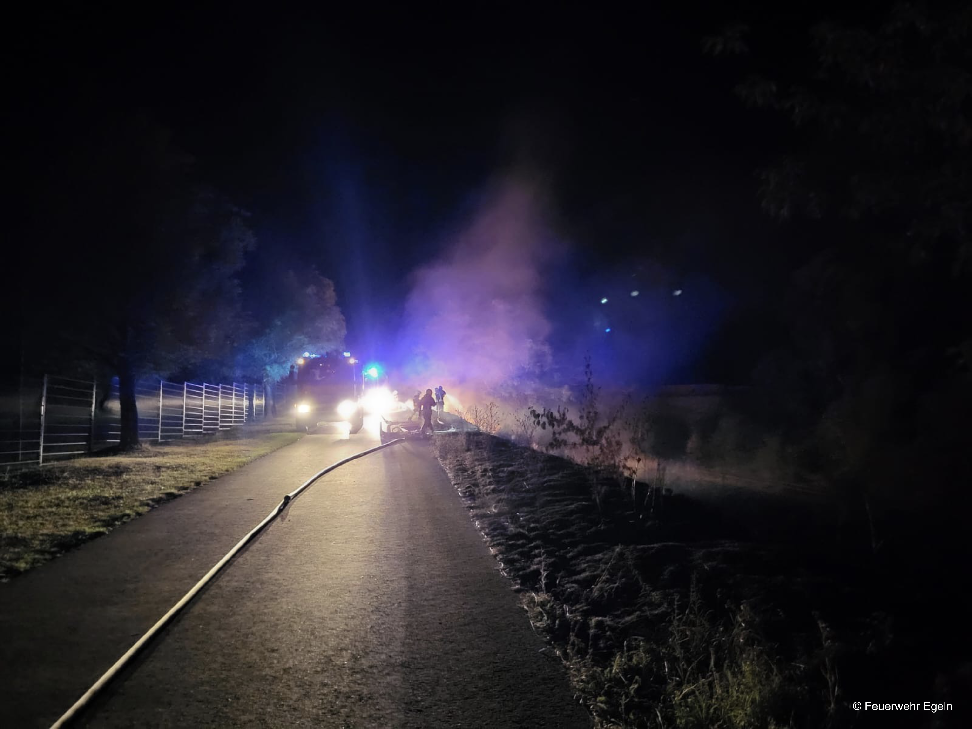 Die Feuerwehr Egeln wurde zu einem Ödlandbrand alarmiert. Vor Ort wurde der Brand von ca. 600 Quadratmetern Vegetation festgestellt. Mit 3 C-Rohren wurde das Feuer gelöscht.