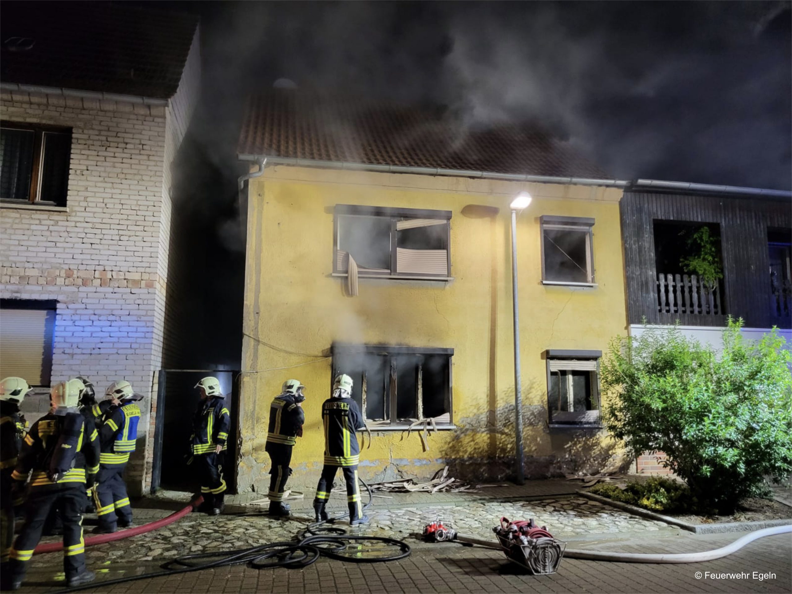 Die Feuerwehr Egeln wurde gemeinsam mit den Ortsfeuerwehren Unseburg, Wolmirsleben, Borne und Tarthun zu einem Gebäudebrand in Unseburg alarmiert. In einem leerstehenden Wohnhaus brannte es im Erdgeschoss und im ersten Obergeschoss mit starker Rauchentwicklung. Die Ortsfeuerwehr Unseburg hatte beim Eintreffen der Feuerwehr Egeln bereits Löschmaßnahmen mit einem C-Rohr im Innenangriff und einem C-Rohr im Außenangriff eingeleitet. Eine stabile Wasserversorgung war durch die Feuerwehr Unseburg ebenfalls aufgebaut worden. Ein Trupp der Feuerwehr Egeln nahm ein weiteres C-Rohr im Innenangriff vor. Im Gebäudeinneren brannten in erster Linie eingelagerte Reifen und Stroh sowie Unrat.