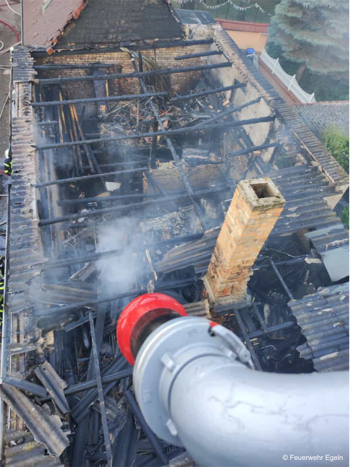 Gegen 22:30 Uhr konnte die Egelner Feuerwehr ihren Einsatz beenden. Insgesamt ist von einem hohen Sachschaden durch den Brand auszugehen. Der Rettungsdienst behandelte zudem sieben leicht verletzte Zivilpersonen, die sich leichte Rauchgasvergiftungen zugezogen hatten.