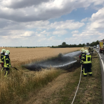 Die Feuerwehr Egeln wurde zur Bekämpfung eines Flächenbrandes alarmiert. Vor Ort eingetroffen wurden ca. 50 Quadratmeter brennende Straßenböschung festgestellt. Das Feuer wurde mit 2 C-Rohren bekämpft. Die Einsatzstelle wurde gegen den fließenden Verkehr abgesichert. Da zwischenzeitlich ein Übergreifen des Brandes auf ein angrenzendes Getreidefeld zu befürchten war, wurde zur Unterstützung die Feuerwehr Westeregeln mit einem Tanklöschfahrzeug angefordert. Der Einsatz konnte kurz darauf beendet werden.