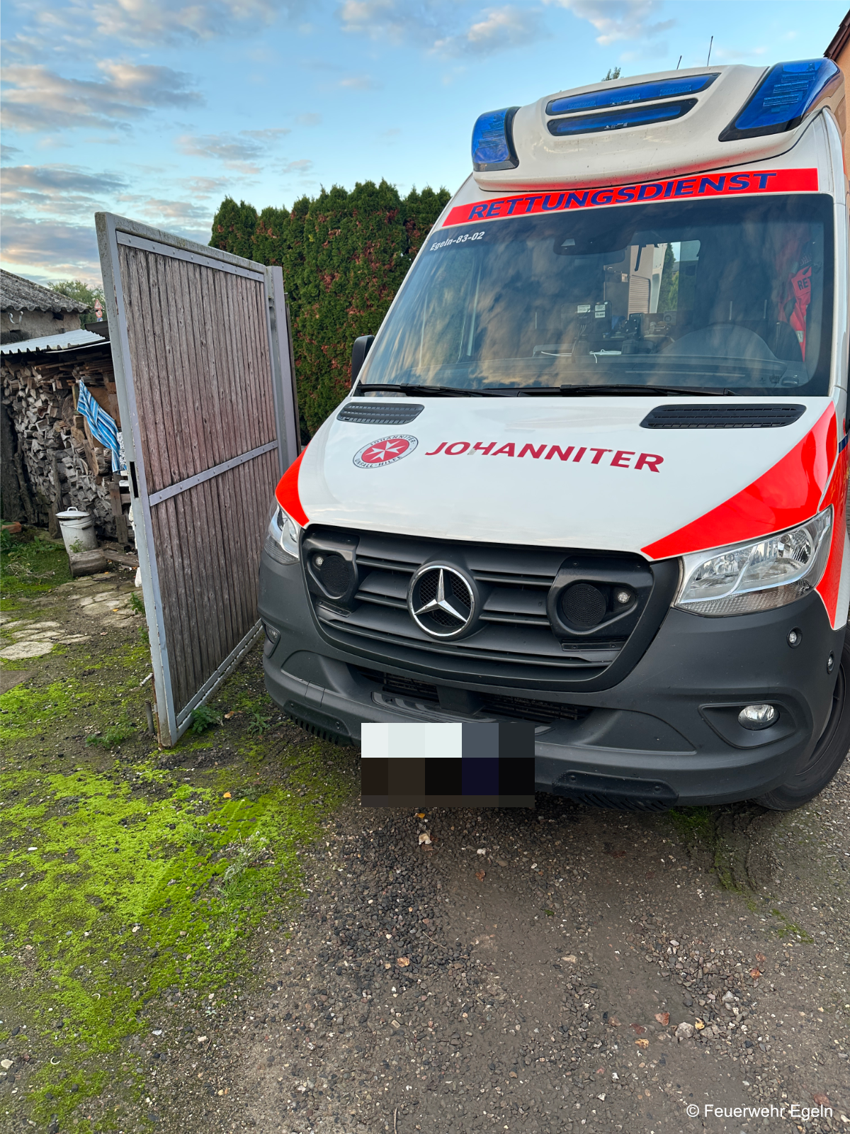 Die Feuerwehr Egeln wurde alarmiert, um den an der Einsatzstelle anwesenden Rettungsdienst beim Transport einer Person zu unterstützen.