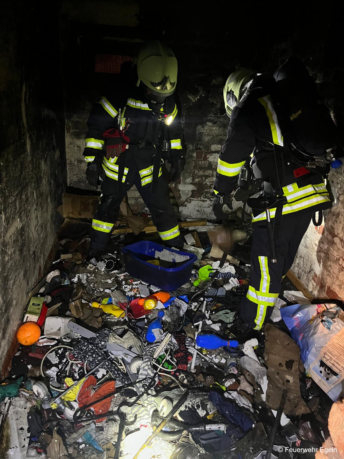 Beim Eintreffen der Egelner Einsatzkräfte wurde ein brennender Kellerraum in dem Eingang neben dem Brandobjekt von vor einigen Wochen festgestellt. Der Rauch hatte sich bereits im Wohnhaus ausgebreitet. Alle Bewohnerinnen und Bewohner, darunter mehrere Kinder hatten das betroffene Haus aber bereits vor dem Eintreffen der Feuerwehr verlassen können. Die Einsatzkräfte führten umgehend eine Evakuierung von weiteren Personen aus dem Nachbargebäude durch und nahmen die Brandbekämpfung im Keller auf. Insgesamt wurden dafür 6 Trupps mit Atemschutzgeräten eingesetzt. Zudem wurde aus einer Wohnung im Brandobjekt eine Katze gerettet. Das betroffene Wohnhaus wurde mit einem Überdrucklüfter vom Rauch befreit. Dennoch konnte eine Familie vorerst nicht in ihre Wohnung zurückkehren. Die Verwaltung der Egelner Mulde kümmerte sich um die betroffenen Personen und sorgte zudem für die Verpflegung an der Einsatzstelle.