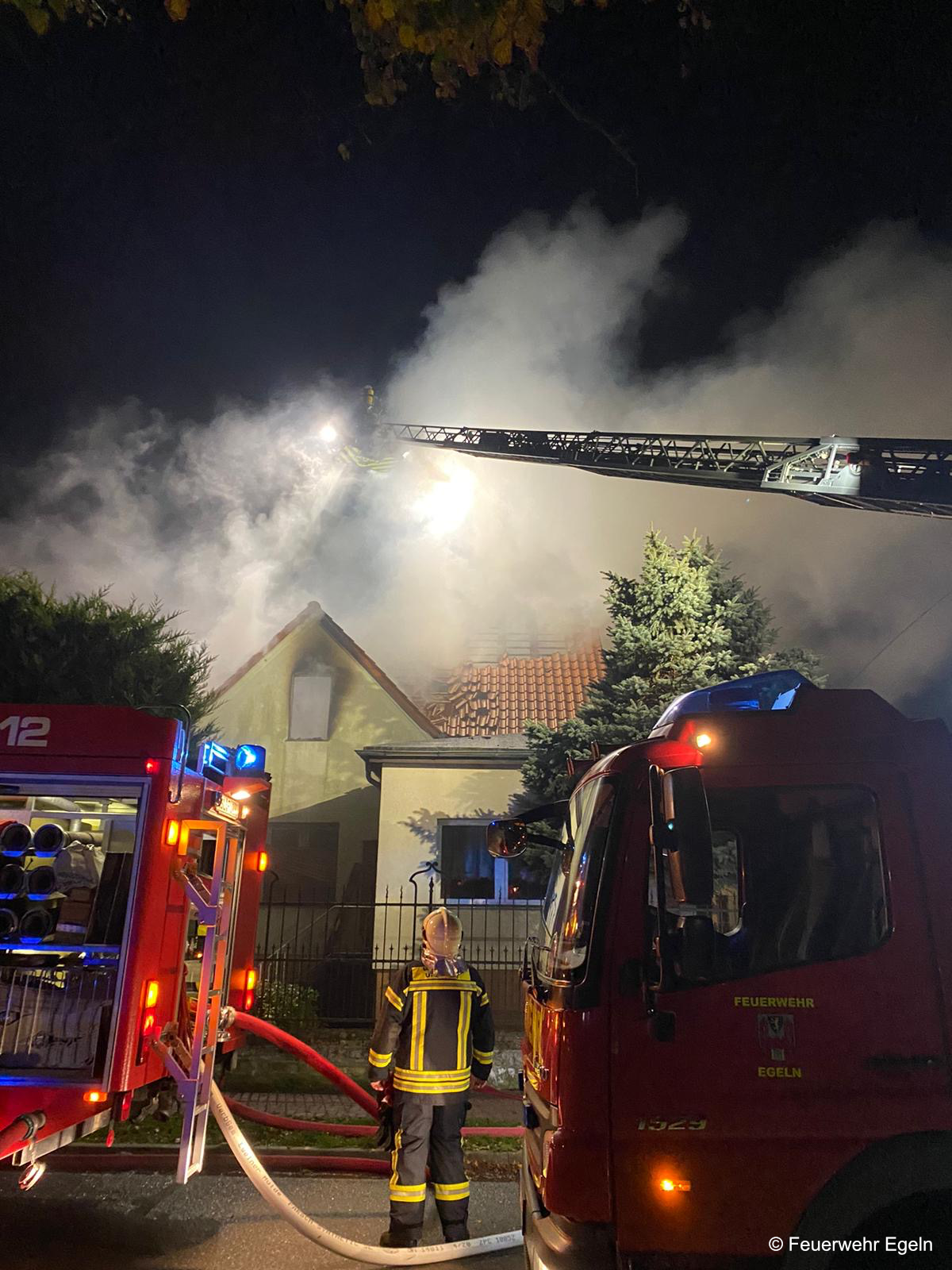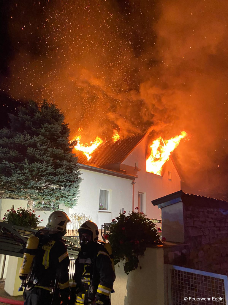 Vor Ort wurde von den ersteintreffenden Kräften ein nahezu im Vollbrand stehendes Wohnhaus festgestellt und ein erster Löschangriff durchgeführt. Die Einsatzkräfte der Feuerwehr Egeln, die mit Löschgruppenfahrzeug, Drehleiter sowie Mannschaftstransportfahrzeug zur Einsatzstelle ausgerückt waren, unterstützten die Löscharbeiten im Innenangriff und im Außenangriff. Zu Beginn des Einsatzes wurde eine Person vor dem Objekt tot aufgefunden, eine weitere Person wurde im späteren Verlauf des Einsatzes im Brandobjekt tot aufgefunden. Auf Grund der tragischen Umstände des Einsatzes wird hier auf weitergehende Erläuterungen des Einsatzverlaufes etc. verzichtet. In den Medien erfolgte eine umfangreiche Berichterstattung zum Einsatzgeschehen und den tragischen Folgen.