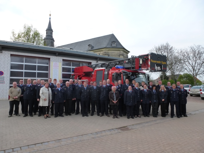 Die Feuerwehr Egeln zum Gruppenfoto angetreten (2014)