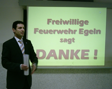 Offiziell in Betrieb genommen wurde das Gerät zum Ausbildungsdienst am 26. Januar 2007. Der Leiter der Sparkassen-Geschäftstelle in Egeln, Herr Frank Fischer, überreichte der Feuerwehr zu diesem Anlass einen symbolischen Scheck. Die Kameradinnen und Kameraden bedanken sich herzlich bei der Sparkasse für die Spende, die die Anschaffung des Beamers möglich machte!