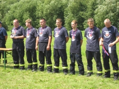 (09/2007)Dass die Egelner Feuerwehr eine flinke Truppe ist, hat sie erneut bei den Kreismeisterschaften in der Disziplin "Löschangriff nass" bewiesen. Bei dem Wettkampf, der jüngst in Giersleben stattfand, gingen neun Mannschaften an den Start. Das Egelner Team belegte mit 49,11 Sekunden Platz 2 hinter Gatersleben (48,42 Sekunden) und vor Meisdorf (51,3 Sekunden). Die 2. Egelner Mannschaft belegte Platz 5. Damit konnten die Egelner Feuerwehrleute einmal wieder ihre Schnelligkeit und Geschicklichkeit unter Beweis stellen. Seit Jahren werden bei den Kreismeisterschaften von den Egelnern vordere Plätze belegt. Die Bilder zeigen die Mannschaften aus Egeln bei der Siegerehrung.