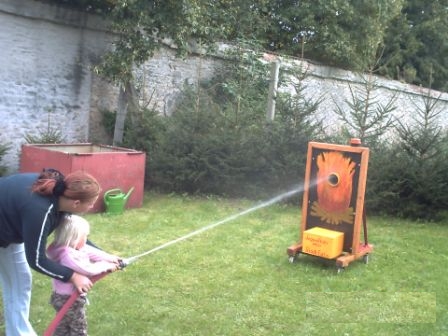 (03/2007) Wenn die Feuerwehr Egeln ihren nächsten Tag der offenen Tür durchführt, ist sie um eine Attraktion reicher: Dank des handwerklichen Geschicks von Kamerad Andreas Wettin, der zugleich auch stellvertretender Jugendfeuerwehrwart ist, verfügt die Egelner Wehr nun über ein Zielgerät, mit dem Löschübungen für Kinder und Jugendfeuerwehrleute durchgeführt werden können. Der Apparat hat an der Front eine Öffnung, durch die zielgenau Wasser gespritzt werden muss. Ist der Behälter im Innern voll, leuchtet eine Lampe auf und eine Sirene ertönt. Kleine Lösch-Wettbewerbe auf Zeit werden so möglich.