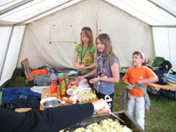Foto zeigt die Egelner Jugendfeuerwehrgruppe bei der Zubereitung der Selbstverpflegung.