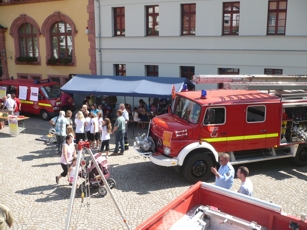 (08/2009) In Sachen Mitgliederwerbung ist die Egelner Feuerwehr erstmals neue Wege gegangen: Mit dem ersten "Feuerwehr-Schnuppertag" sollten Bürgerinnen und Bürger aus Egeln auf die Wichtigkeit der ehrenamtlichen Feuerwehrarbeit aufmerksam gemacht und neue Mitglieder für die Einsatzabteilung, die Jugendfeuerwehr und den Förderverein gewonnen werden. Extra zu diesem Zweck sind die Kameradinnen und Kameraden mit allem was sie an Einsatz-Technik zu bieten hatten kurzerhand auf den Egelner Marktplatz gezogen. Es wurde alles aufgebaut und durfte alles besichtigt, angefasst und ausprobiert werden. Die Egelner Feuerwehrleute standen für Fragen rund um den Brandschutz zur Verfügung. Für alle Kinder gab es ein Extra-Programm: An der Kübelspritze konnte die Treffsicherheit mit dem Löschstrahl geübt werden und ein Bastelstand mit Feuerwehrauto-Bastelbögen stand extra bereit.