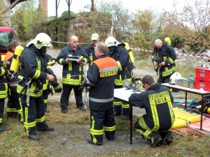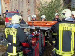 (10/2011) Der erste gemeinsame Ausbildungstag der Freiwilligen Feuerwehren der Verbandsgemeinde "Egelner Mulde" am 8.10.2011 war ein voller Erfolg. Zusammen trainierten die Kameradinnen und Kameraden der Feuerwehren Egeln, Borne, Hakeborn, Etgersleben, Westeregeln, Wolmirsleben, Tarthun und Unseburg auf dem Gelände der alten Malzfabrik in Etgersleben den Einsatz bei Bränden mit vermissten Personen, den Umgang mit Ausrüstung und Gerätschaften sowie das Vorgehen bei schweren Verkehrsunfällen. Es wurden mehrere Ausbildungs-Stationen zu verschiedenen Themen gebildet: