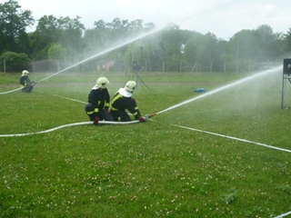 (07/2011) Am 25.06.2011 fuhren zwei Teams der Feuerwehr und der Jugendfeuerwehr Egeln nach Staßfurt, um am Regionalausscheid auf Ebene des Altkreises Staßfurt in der Wettkampfdisziplin "Löschangriff nass" teilzunehmen. Beim "Löschangriff nass" muss innerhalb weniger Sekunden ein Löschangriff aufgebaut und mit 2 C-Rohren vorgetragen werden, um in kürzester Zeit einen Wasserbehälter zu befüllen.