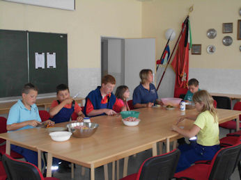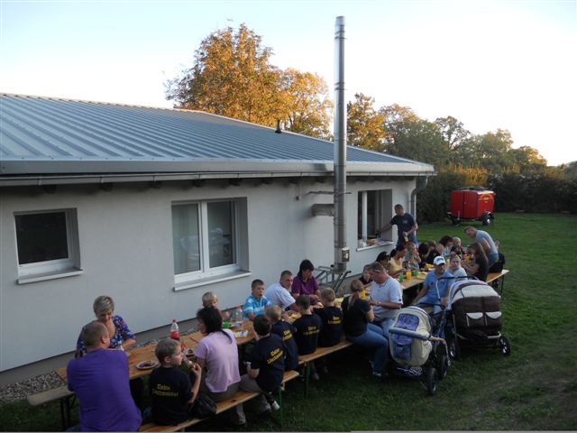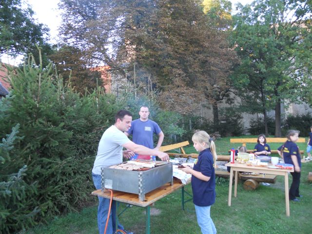 Die Kinder hatten viel Spaß bei der Vorbereitung und nahmen den Aufenthaltsraum gern in Beschlag. Alle hatten etwas mitgebracht, Würstchen, Fleisch, Salate, Brot, Obst……,damit stand einem gemütlichen Grillabend nichts im Weg. Der Wettergott hatte es auch sehr gut mit uns gemeint.