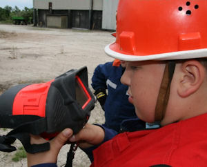 Abschließend wurde der Einsatz der Wärmebildkamera der Feuerwehr Egeln geübt. Hierfür wurden Wärmequellen versteckt, die dann mit Hilfe der Wärmebildkamera aufgespürt werden mussten.