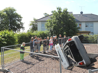 Nach einer knappen Stunde war der Einsatz beendet. Zurück in der Wache wurden die Fahrzeuge wieder hergerichtet. Am späten Nachmittag waren dann die Eltern zum Grillen eingeladen. Auch sie sollten sich davon überzeugen, wie ihre Kinder in der Feuerwehr arbeiten. Doch auch der Grillabend wurde von dem Schrillen des Piepers unterbrochen. Die Einsatzbeschreibung lautete: Verkehrsunfall mit eingeklemmter Person. Vor der Wache wurde dieser nachgestellt. Die Eltern durften dabei zuschauen, wie sich ihre Kinder zusammen mit den "großen" Kameraden mit schwerem Gerät an das Fahrzeug herankämpften.