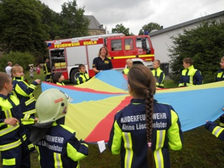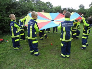 (07/2011) Die Kinderfeuerwehr der Feuerwehr Egeln, die "Kleinen Löschmeister", wurden jetzt komplett eingekleidet. Die neuen schicken Anzüge wurden über die Verbandsgemeinde Egelner Mulde beschafft, besonderer Dank gilt deshalb dem Verbandsgemeindebürgermeister Herrn Stöhr. Zudem konnten für die Kinderfeuerwehr Spielgeräte wie z.B. ein Schwungtuch gekauft werden, dass der jüngste Feuerwehrnachwuchs begeistert in Empfang genommen hat.
