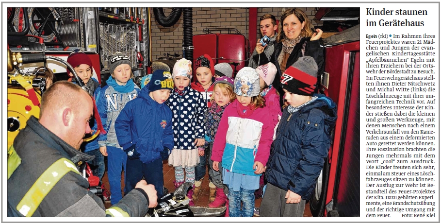 "Apfelbäumchen" besuchten die Feuerwehr Egeln. Die Feuerwehrleute