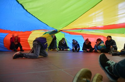große Freude hervorrief. Begeistert nahmen die Kinder das Tuch an sich und