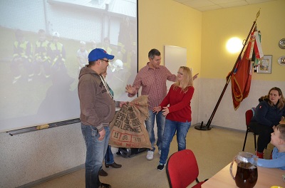 Schmidt vom Förderverein der Feuerwehr Egeln übergeben das Schwungtuch an