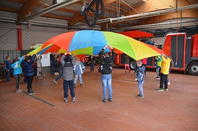 Eltern zur Feuerwache in der Worthstraße und konnten Einiges erleben. Neben