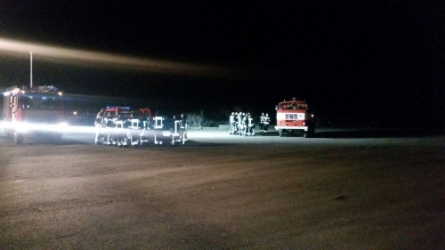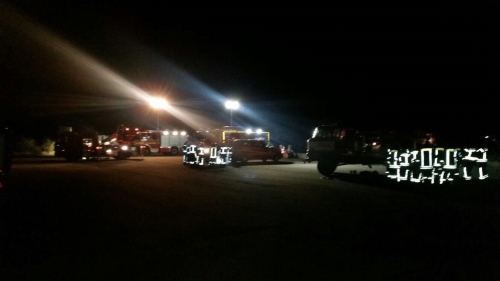 Flutlicht gesetzt. Die Lichtmasten der Feuerwehrfahrzeuge sorgten für