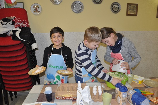 Um 16 Uhr begannen die Vorbereitungen. Es wurden Schmalzstullen geschmiert, Glühwein und Tee gekocht und die Außenanlage