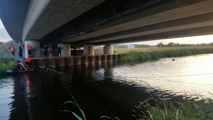 einer Krankentrage am Rettungskorb der Leiter. Die Westeregelner stellten