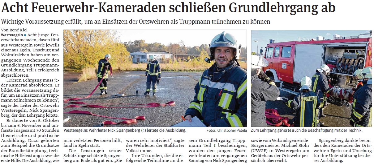 Ausbildung fand bei den Feuerwehren Egeln, Westeregeln und Unseburg