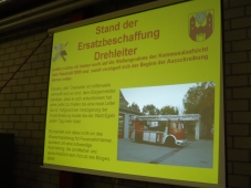 Stadtwehrleiter Malucha ging nun auf die Problematik der Neubeschaffung des Drehleiterfahrzeuges ein. Der dringende Ersatz soll in diesem Jahr kommen. Malucha betonte nochmals die Notwendigkeit der Drehleiter bei der Feuerwehr Egeln als Rettungsgerät und stellte wiederholt klar, dass es sich nicht um ein Spielzeug der Feuerwehrleute handelt. In der Vergangenheit konnte das Egelner Leiterfahrzeug bereits bei vielen Einsätzen wichtige und teilweise lebensrettende Hilfe leisten.