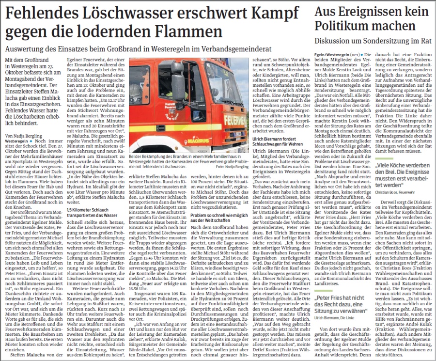 Bericht aus dem "Salzlandkurier" der "Volksstimme" vom 22.11.2012:
