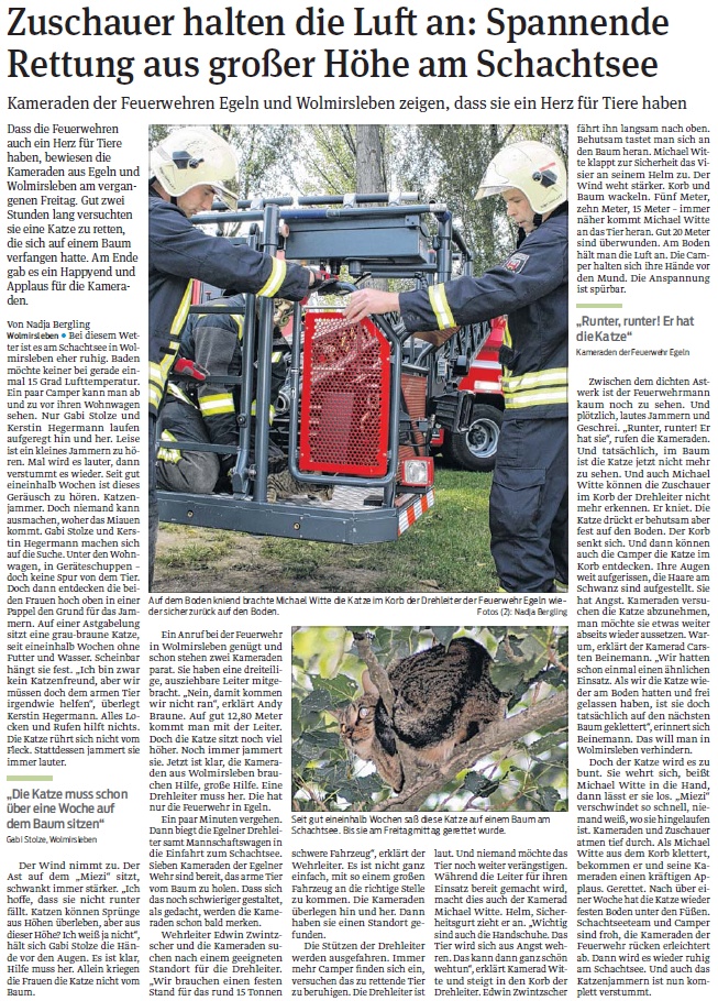 Einsatzbericht aus dem "Salzlandkurier" der "Volksstimme" vom 17.09.2012: