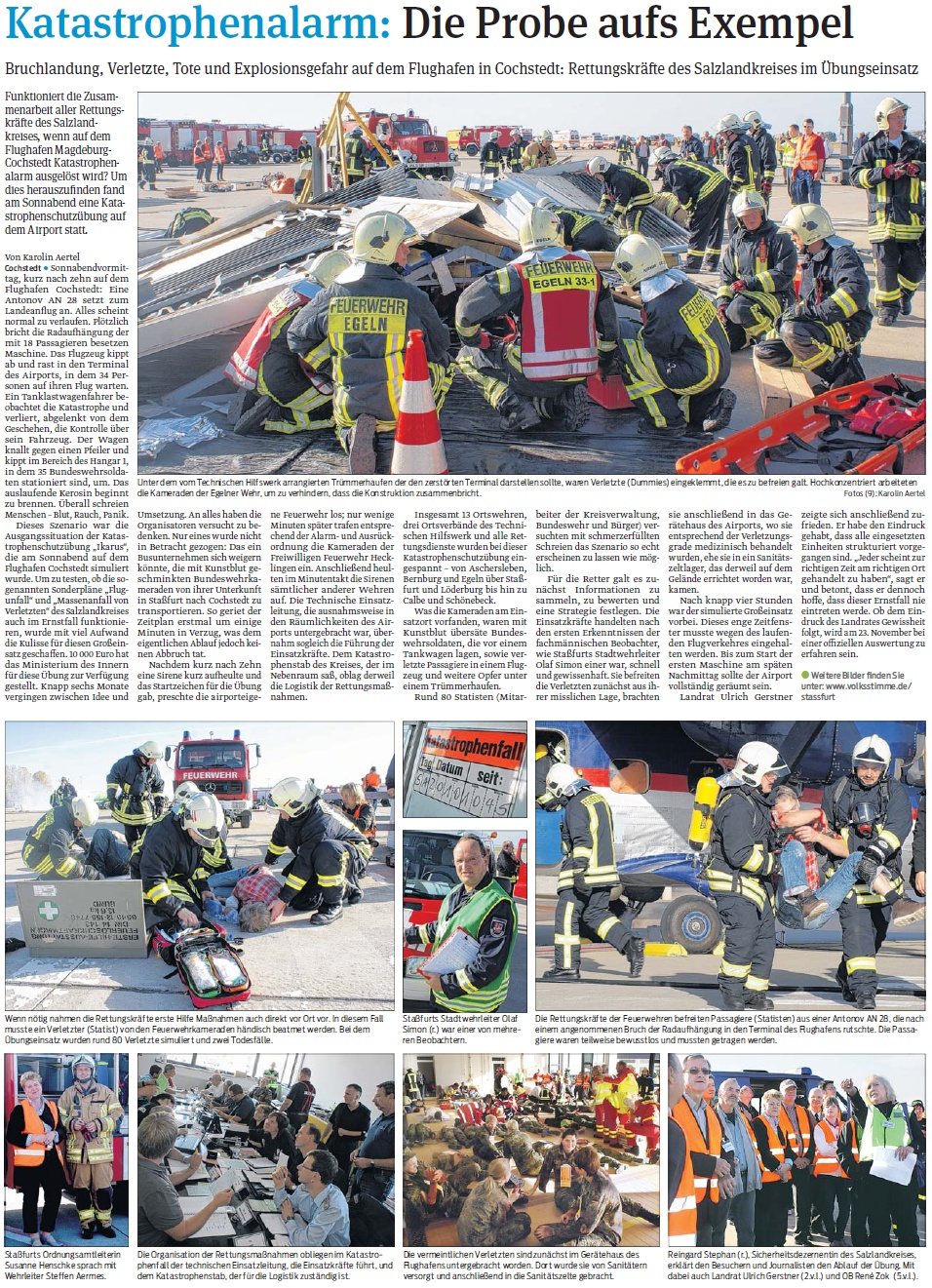Bericht aus dem "Salzlandkurier" der "Volksstimme" vom 22.10.2012: