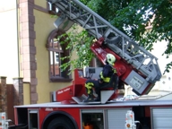 Drehleiter Teile des Daches ab, um eine Abluftöffnung für