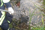 Ausgelaufenes Öl mit Bindemittel aufgenommen, danach