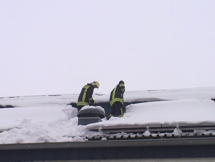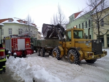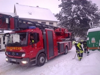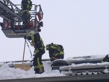 Schneemassen vom Dach des Feuerwehrgerätehauses mit der
