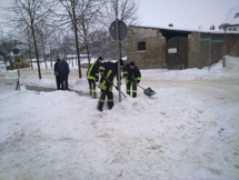 halfen beim Abtransportieren des Schnees und beim Abstumpfen