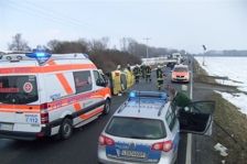 blieben 3 PKW und ein Rettungswagen in einer Schneewehe