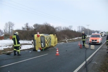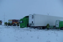 in den Straßengraben. Der Dieseltank der Zugmaschine wurde