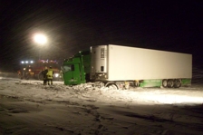 Zugmaschine rutschte zum Teil in den Straßengraben. Ein