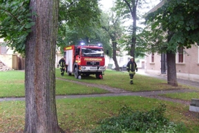 kurz nach der Alarmierung eingetroffene Feuerwehr Egeln