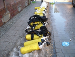 Ersatz-Atemluftflaschen liefern. Die Einsatzkräfte gingen bei