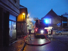 C-Rohr im Innenangriff und ein Rohr über die Drehleiter vor.