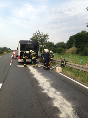 Ausgelaufene Flüssigkeiten wurden mit Bindemittel abgestreut