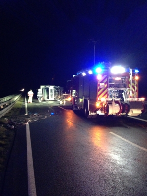 Ein LKW ist Höhe der Abfahrt Körling verunglückt. Auf