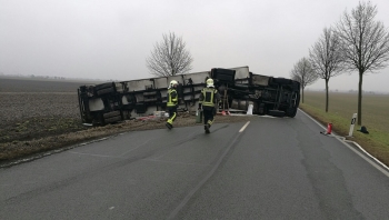 von Flüssigkeiten nach VKU - LKW umgestürzt |