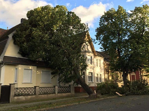 Ein Baum auf dem Gelände einer Schule wurde durch einen Sturm